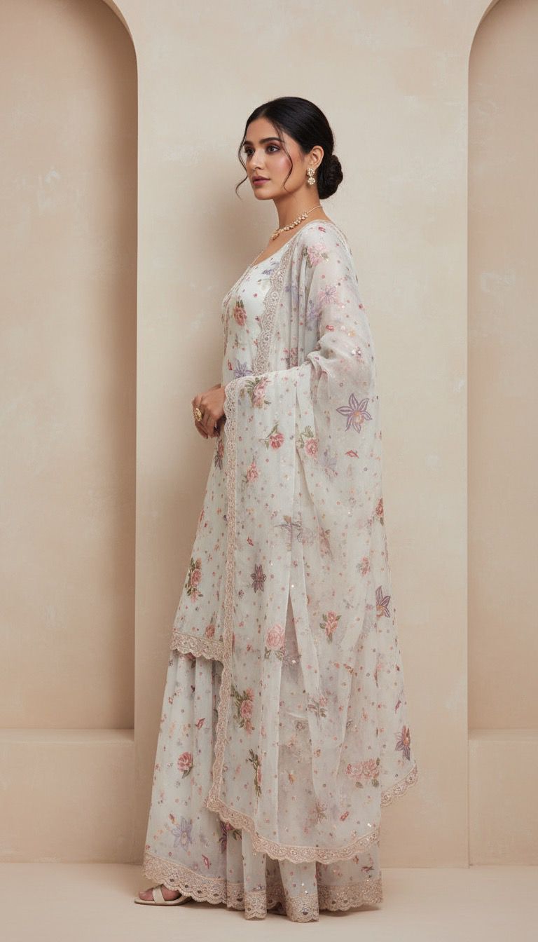 HK – 67 Dusky Sarara Suit. Featuring delicate floral embroidery on a soft dusky fabric, this suit is designed to make you stand out at any occasion. Crafted for comfort and style, it offers a graceful silhouette that highlights your charm effortlessly. Ideal for festive celebrations, weddings, or formal events, this sarara suit promises to elevate your wardrobe with its timeless beauty.