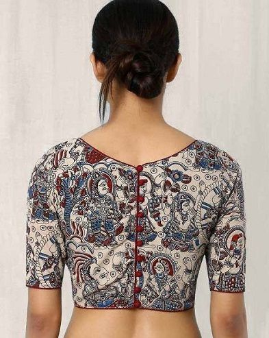 Madhubani Print Back-Button Elbow-Sleeve Blouse